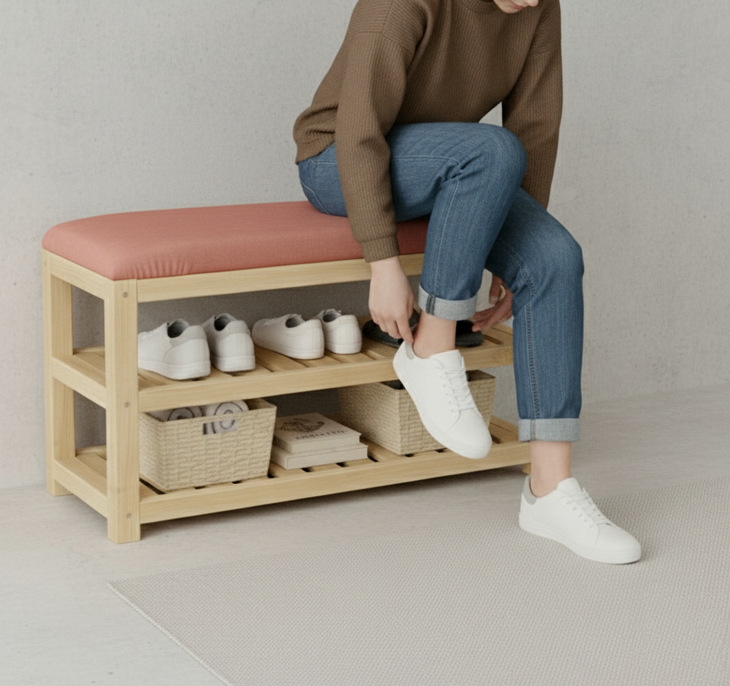 Banquette de chaussures en bois – Rose