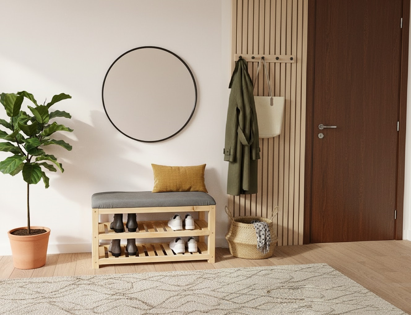 Meuble d’entrée pour rangement des chaussures fait 100% en bois massif.
