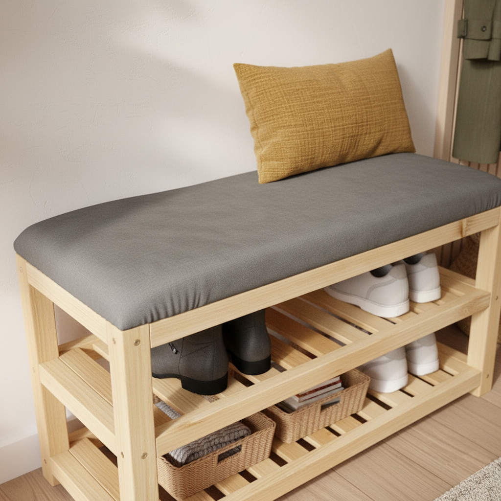 Banquette de chaussures en bois – Gris