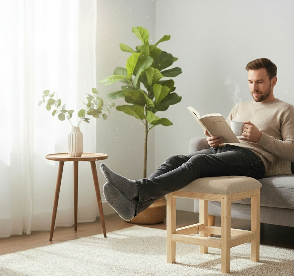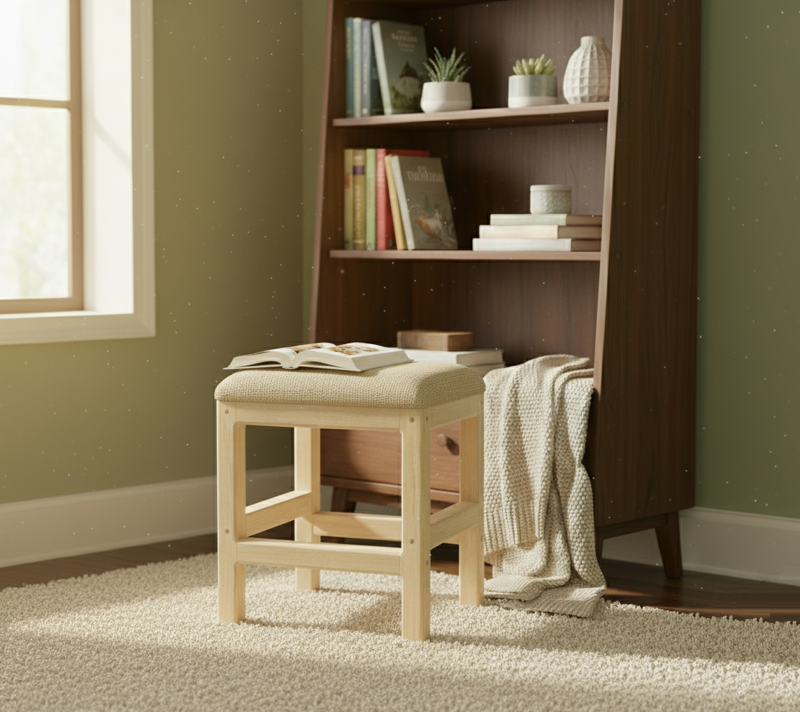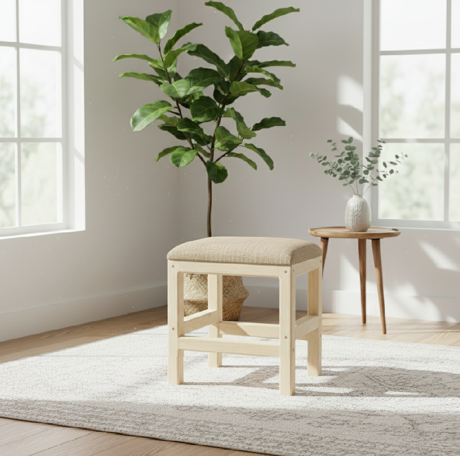 Tabouret en bois – Carré – Beige
